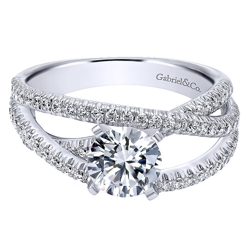 14K White Gold French Pave Free Form Basket Center Diamond 14K White Gold Engagement Ring ER10204W44