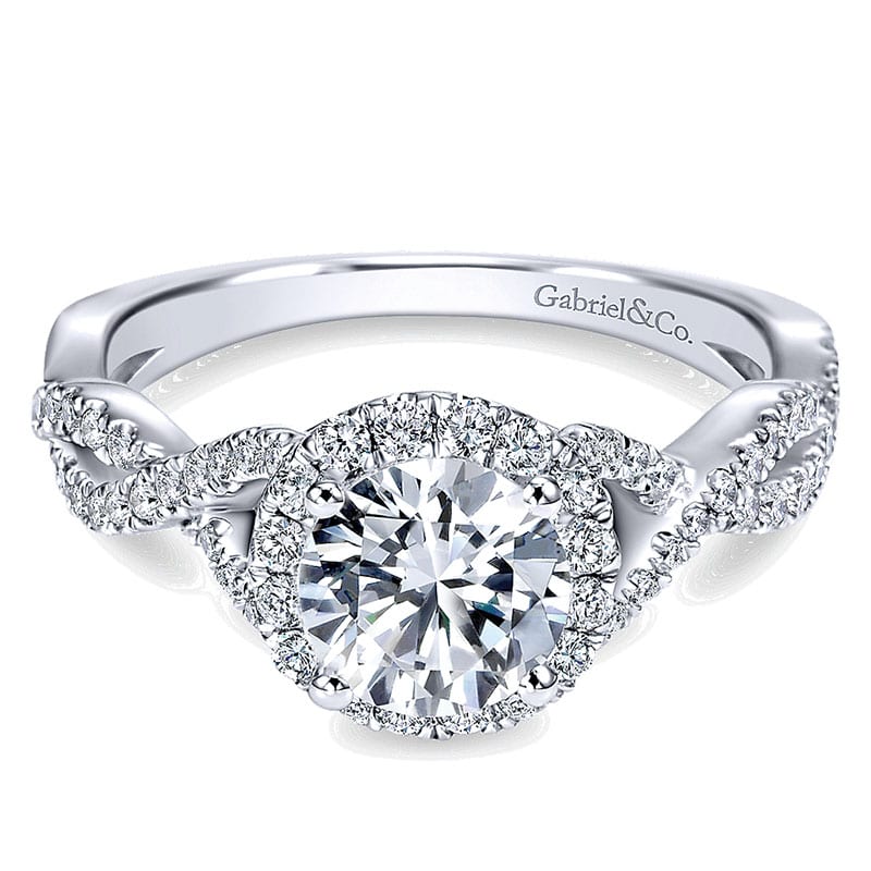 14K White Gold Halo and Twisted Diamond Pave Shank 14K White Gold Engagement Ring ER7543W44Jj