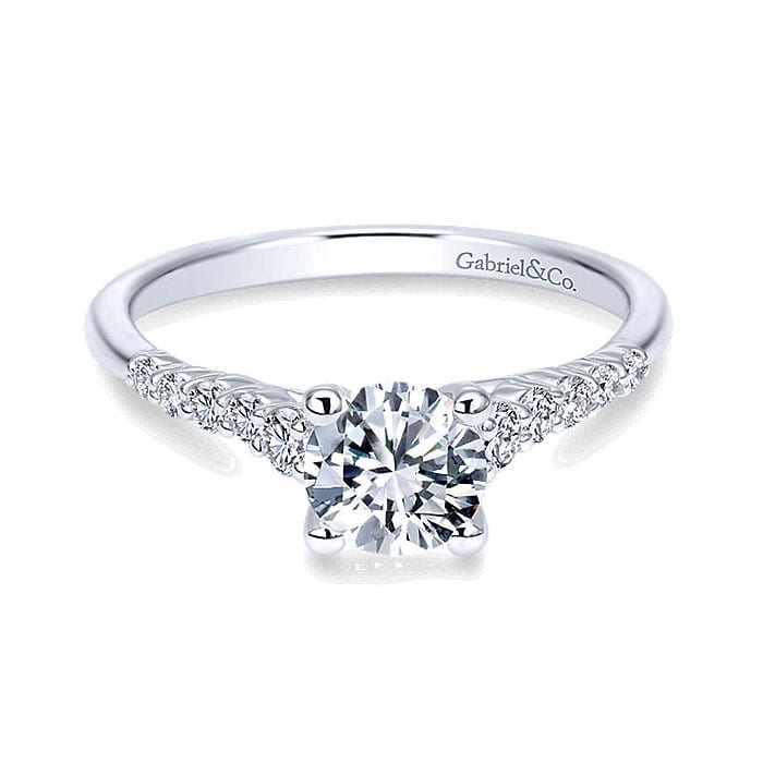 14K White Gold Pave Graduating Diamonds With Straight Shank 14K White Gold Engagement Ring ER11755R3W44JJ