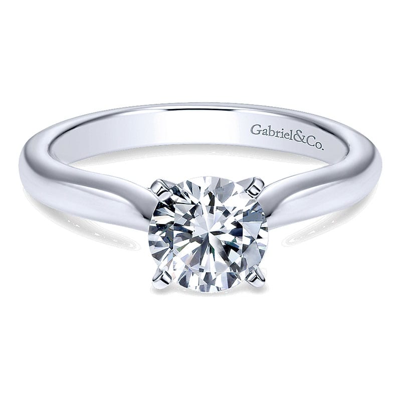 14K White Gold Solitaire Diamond With Rounded Shank 14K White Gold Engagement Ring ER6684W4Jjj