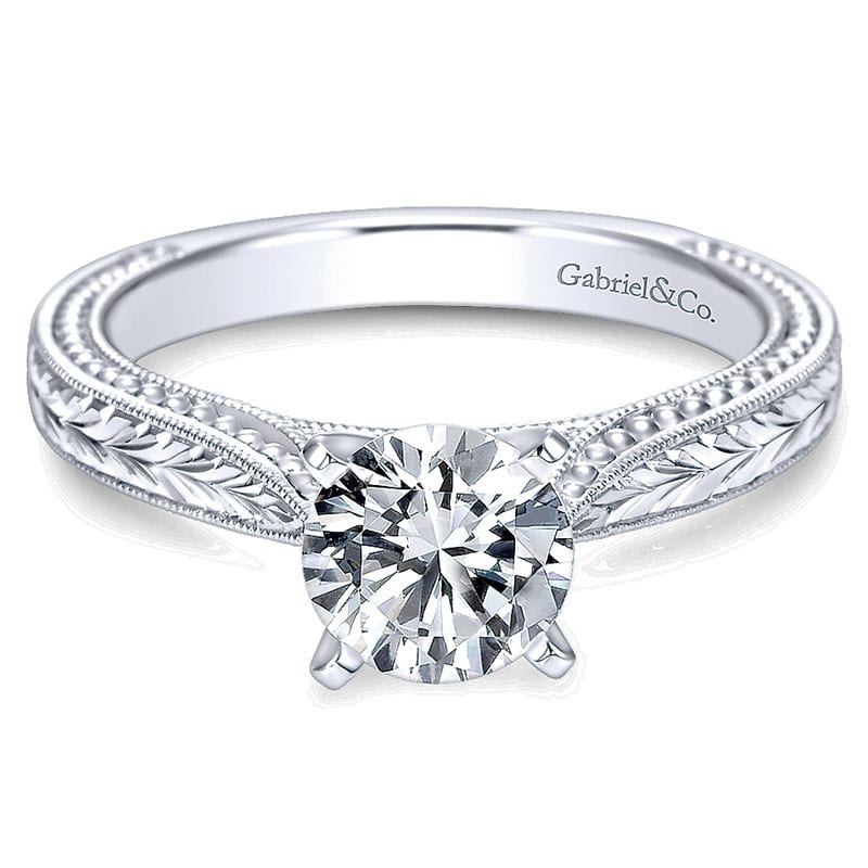 14K White Gold Straight Hand Cut Etching With Cathedral Setting 14K White Gold Engagement Ring ER6636W4JJJ