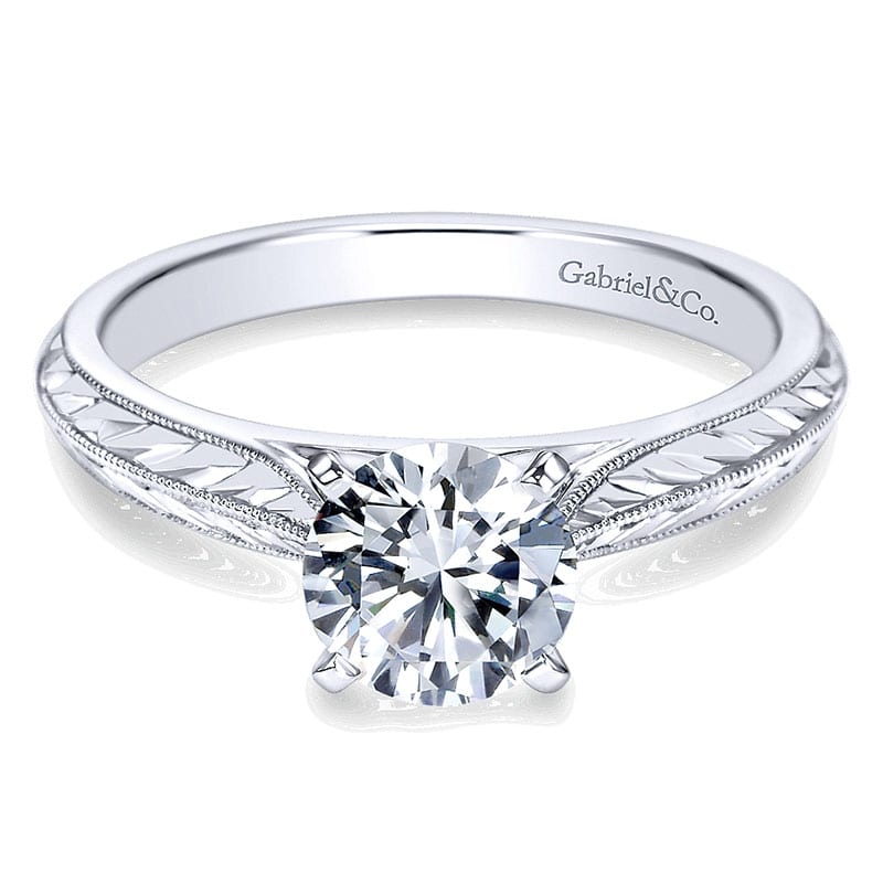 14K White Gold Straight With Hand Etching and Milgrain Detailing 14K White Gold Engagement Ring ER6707W4JJJ