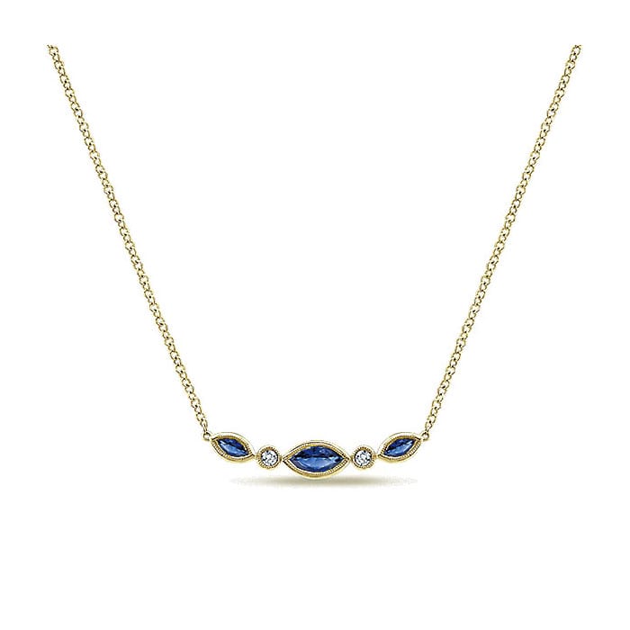 14k Yellow and White Gold Diamond And Sapphire Bar Necklace NK5420Y45SA