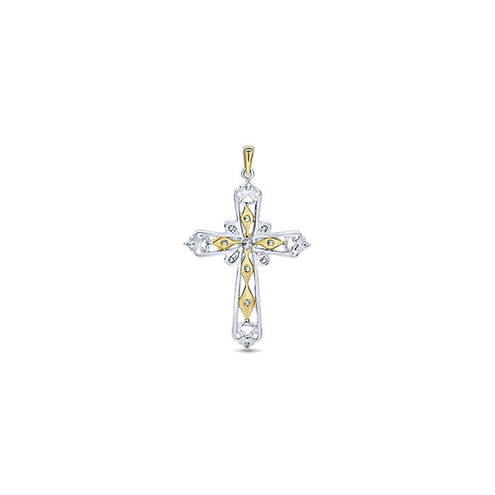14k Yellow and White Gold Diamond Cross Cross Pendant PC485M44JJ