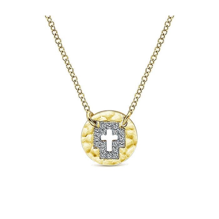 14k Yellow and White Gold Diamond Cross Necklace NK5208Y45JJ