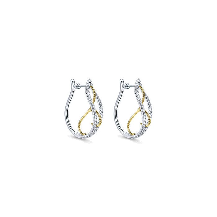 14k Yellow and White Gold Diamond Intricate Hoop Earrings EG12094M45JJ