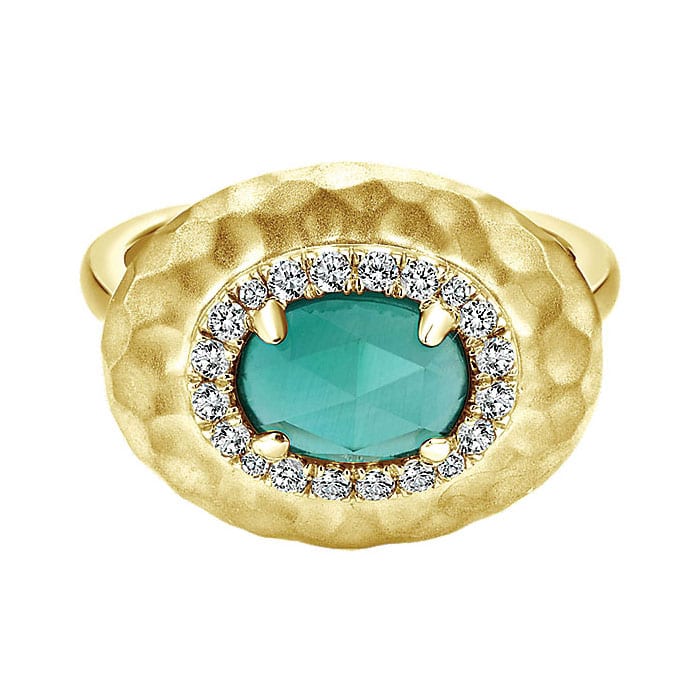 14k Yellow and White Gold Diamond Rock Crystal and Green Onyx Fashion Ladies' Ring LR50693Y45XG