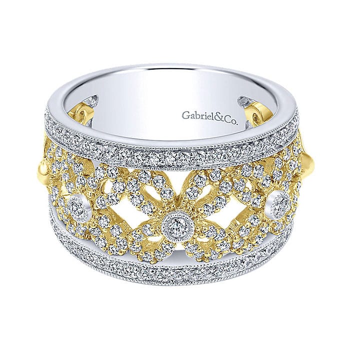 14k Yellow and White Gold Diamond Wide Band Ladies' Ring LR4814M44JJ