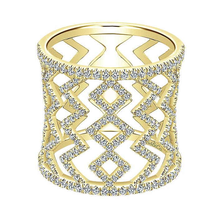 14k Yellow and White Gold Diamond Wide Band Ladies' Ring LR51127Y45JJ