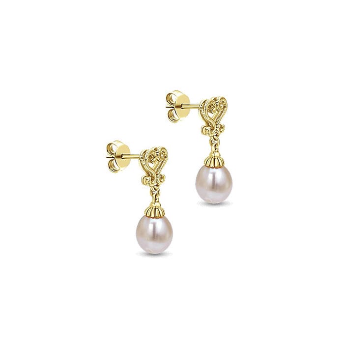 14k Yellow and White Gold Pearl Drop Earrings EG9878Y4JPL