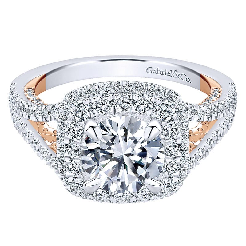 18k White and Pink Gold Diamond Double Halo Engagement Ring ER13445R6T84JJ