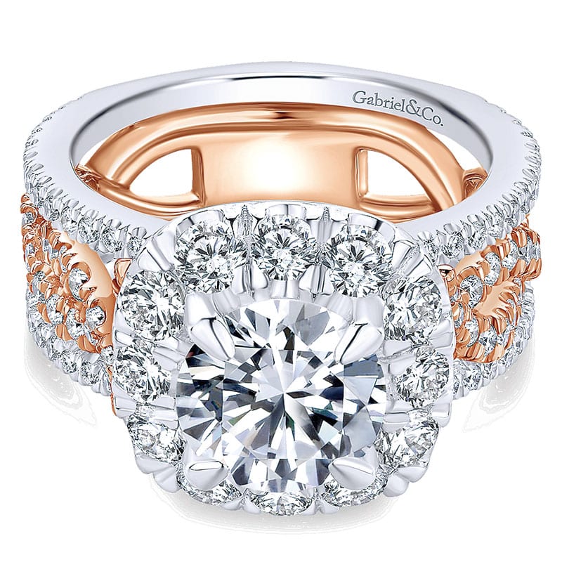 18k White and Pink Gold Diamond Halo Engagement Ring ER13681R8T84JJ