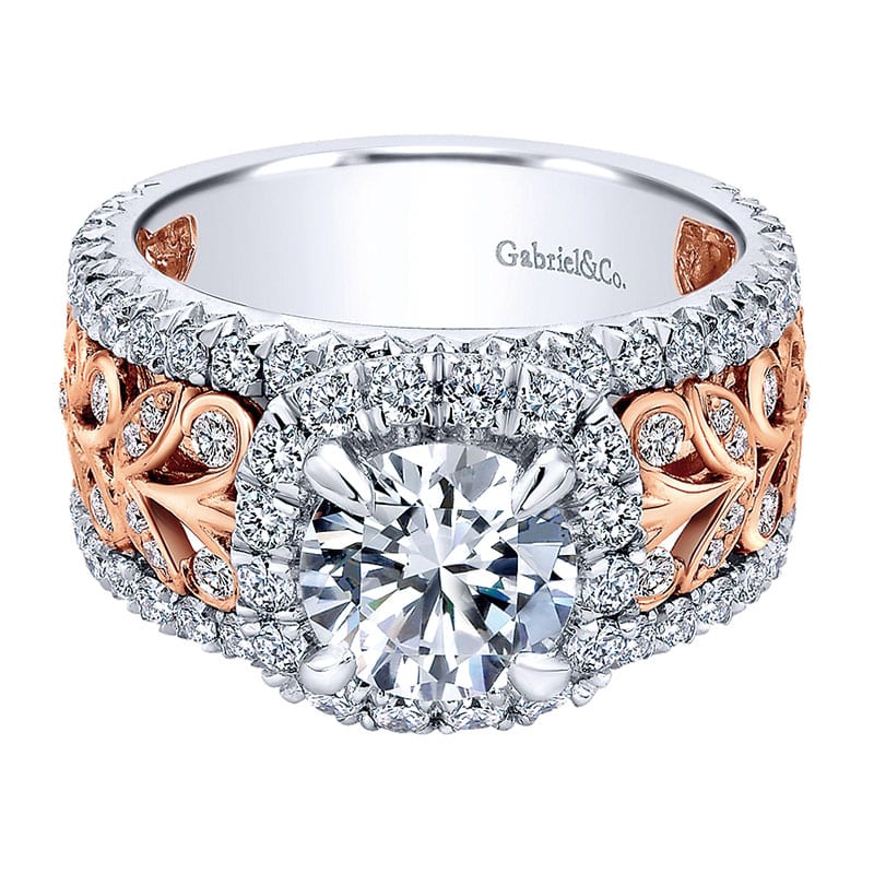 18K White and Pink Gold Diamond Halo Two-Tone Engagement Ring ER11985R6T84Jj
