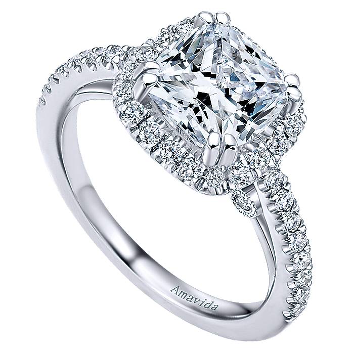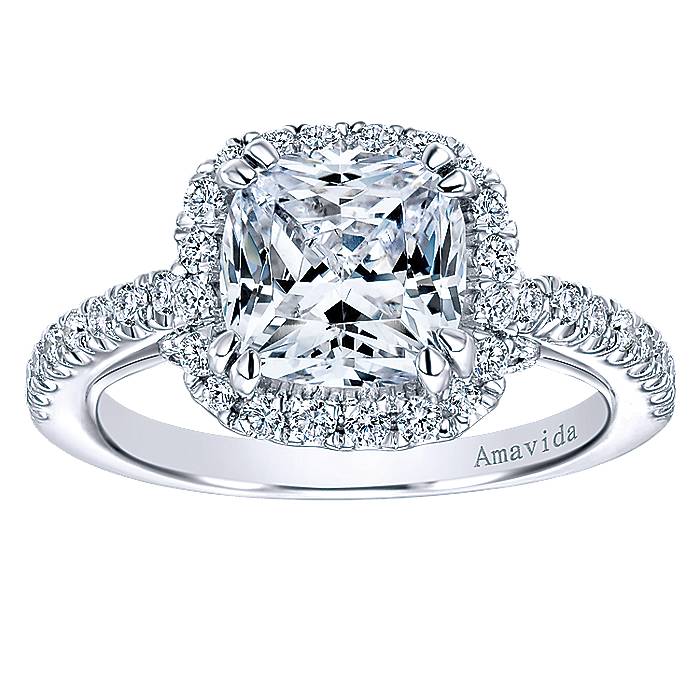 18K White Gold Amavida Engagement Ring Chic Diamond Halo Accentuated By Ornate Milgrain And Diamond Detailing