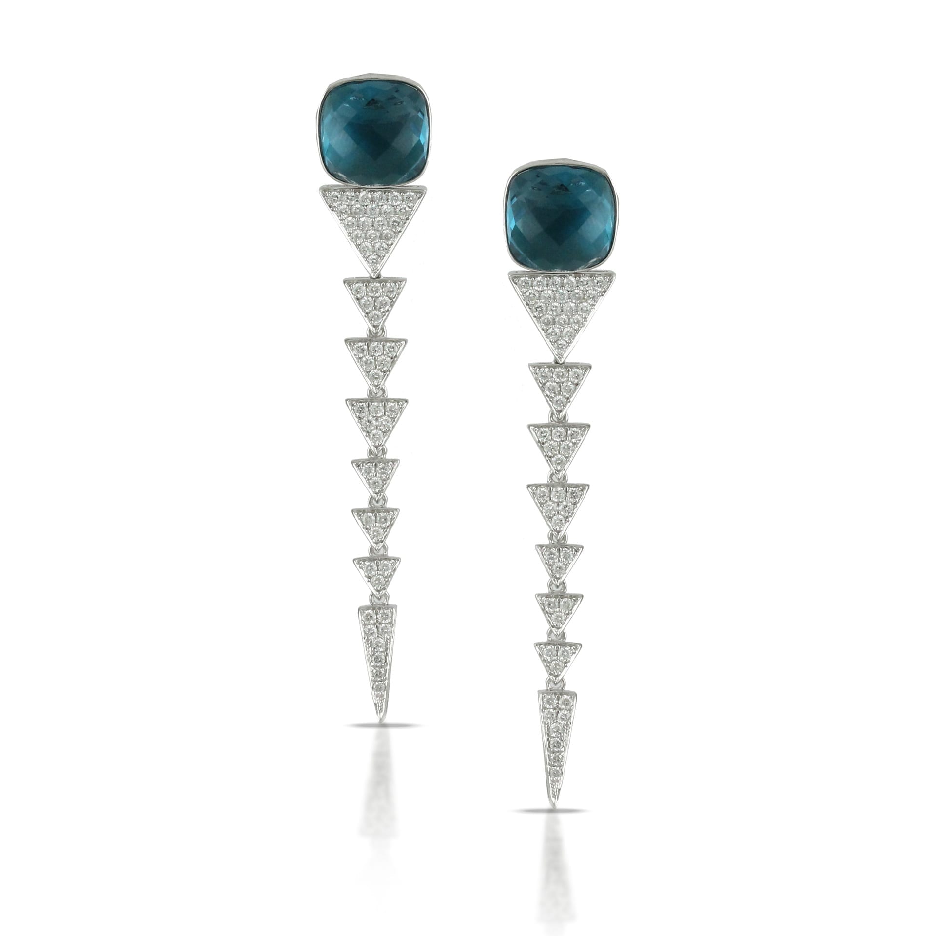18k White Gold Diamond Tail Earring With London Blue Topaz