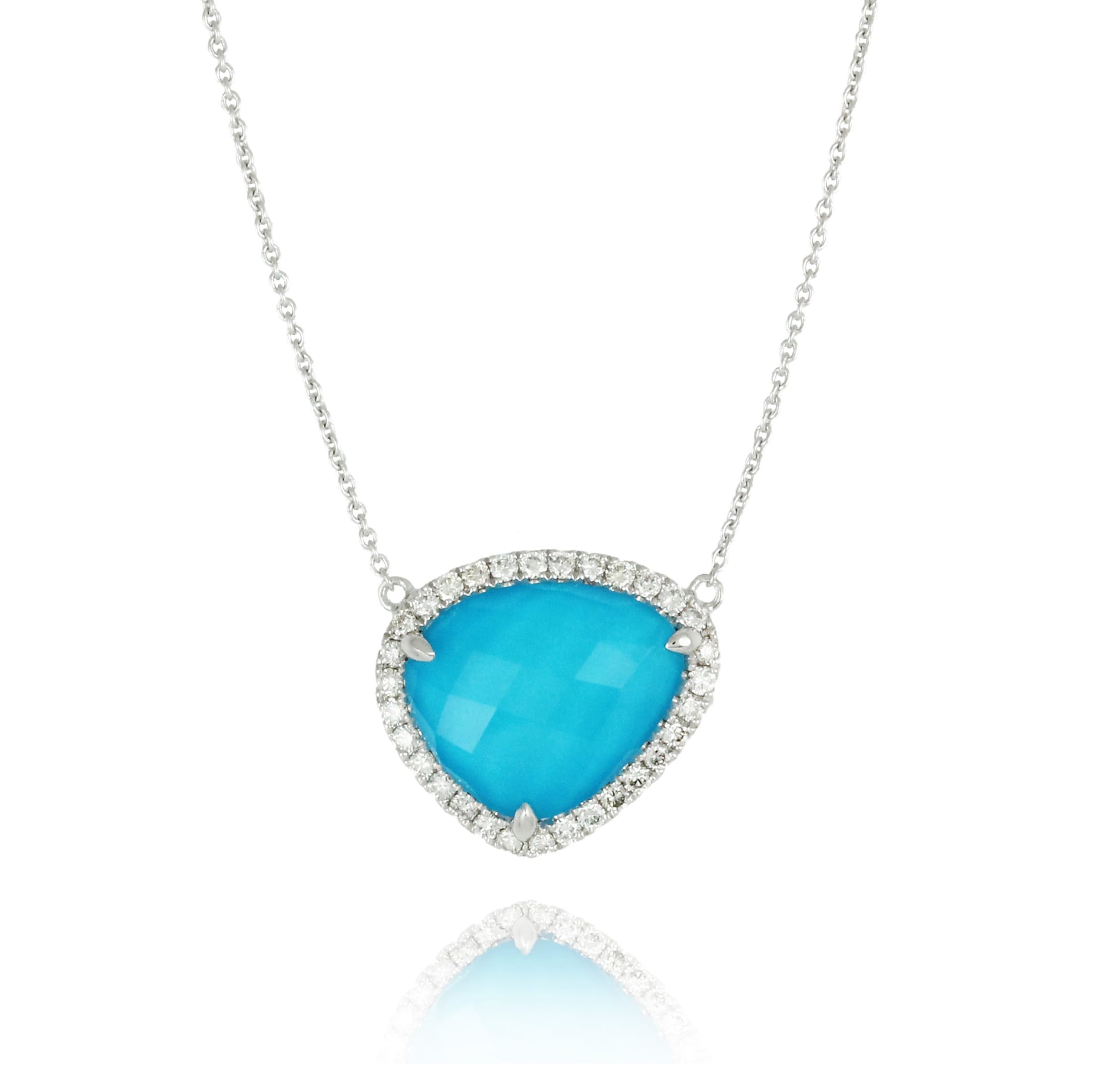 18k White Gold Diamond Nekclace With Smooth White Topaz Over Turquoise