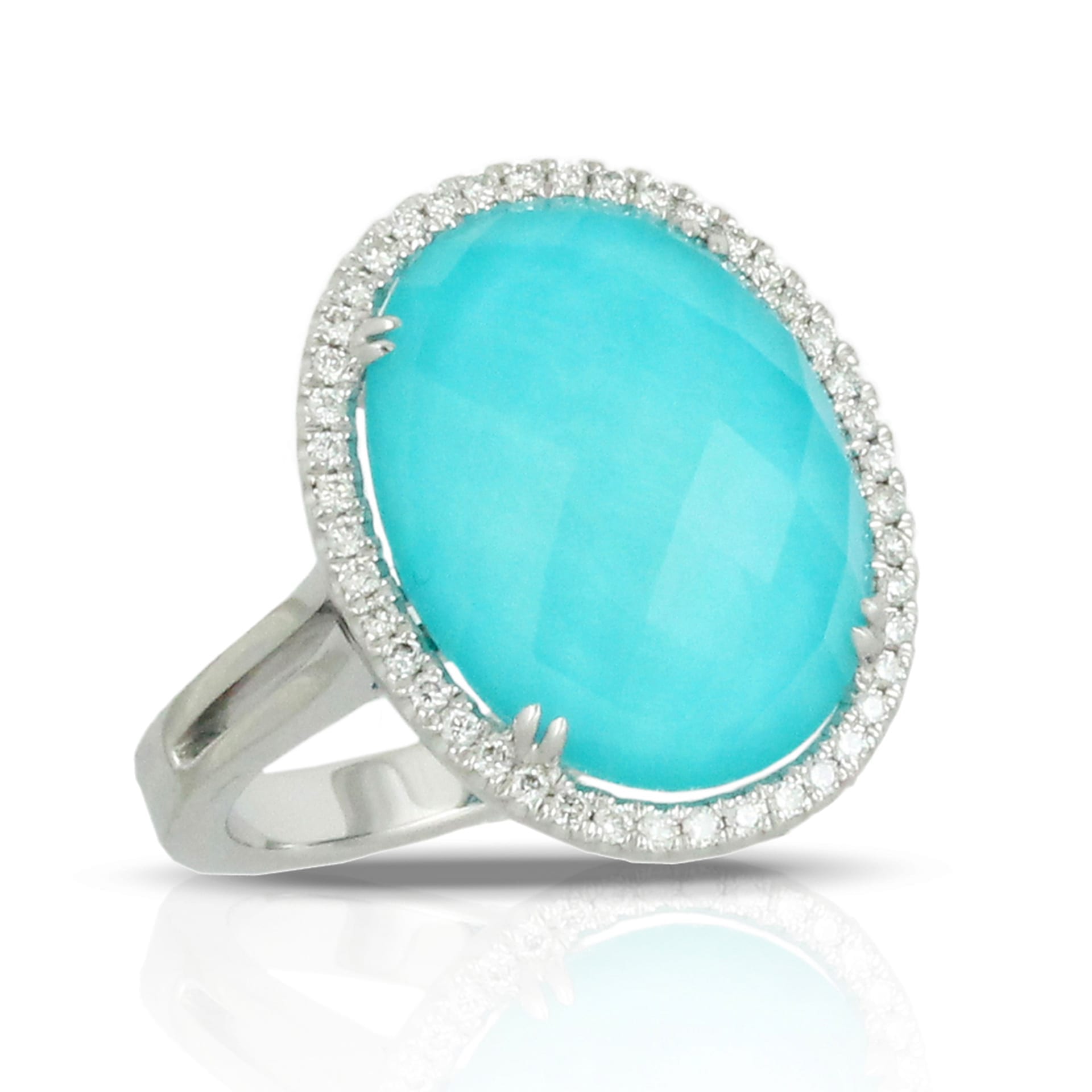 18k White Gold Diamond Ring With Clear Quartz Over Turquoise