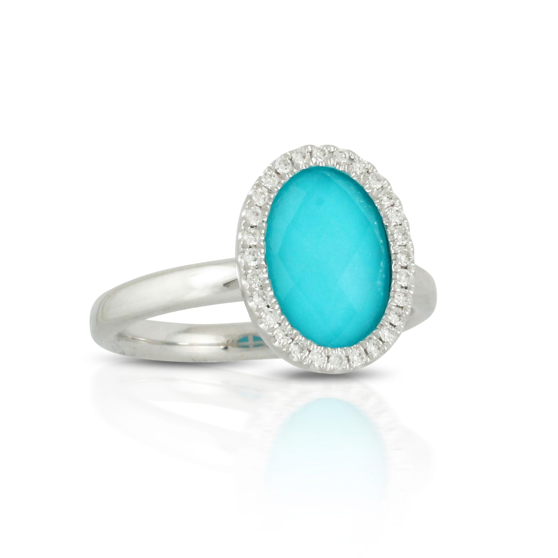 18k White Gold Diamond Ring With Clear Quartz Over Turquoise
