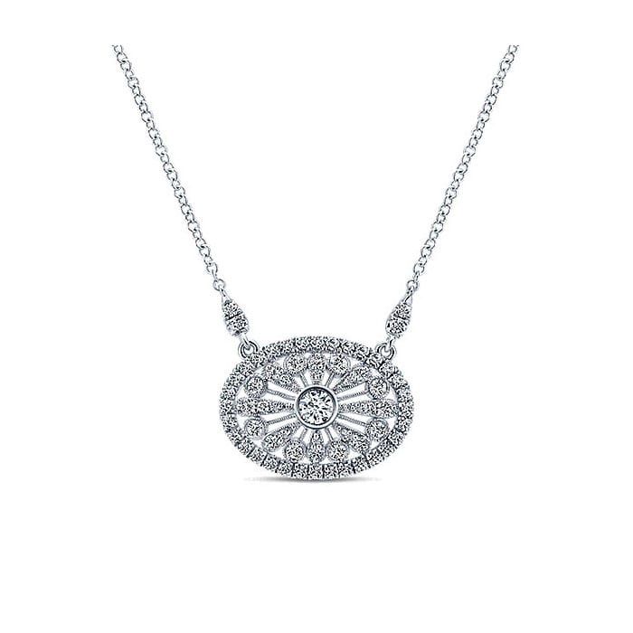 18k White Gold East West Oval Pendant Diamond Fashion Necklace NK5047W84JJ