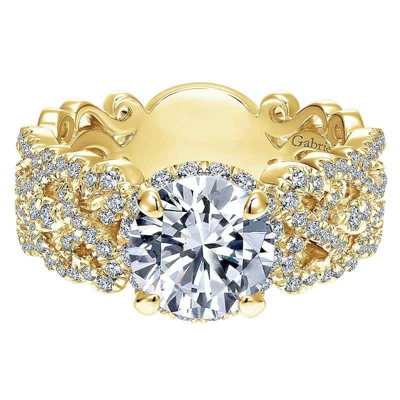 18K Yellow and White Gold Diamond Halo 18K Yellow and White Gold Engagement Ring ER12190R4Y84Jj