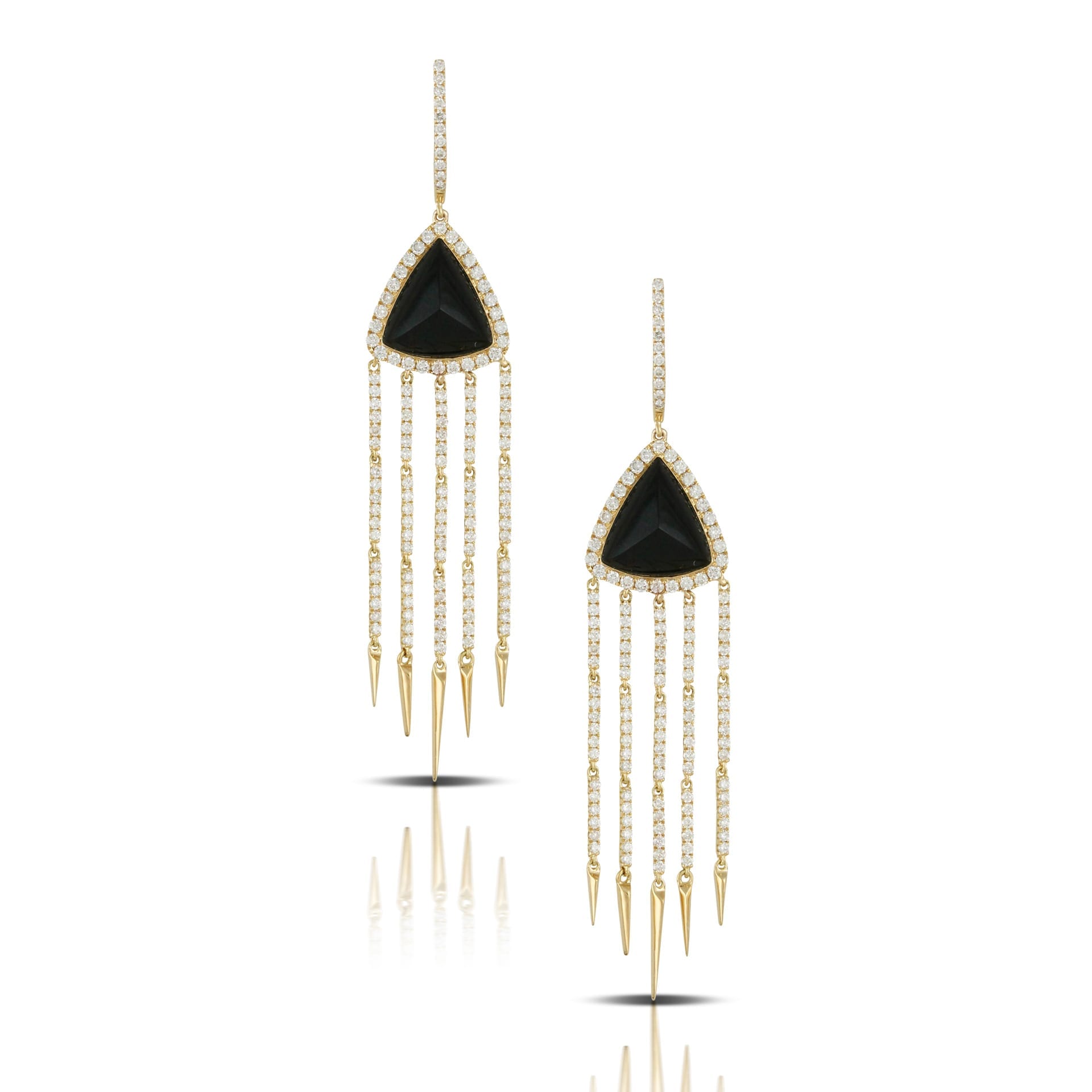18k Yellow Gold Diamond Earring With Black Onyx.