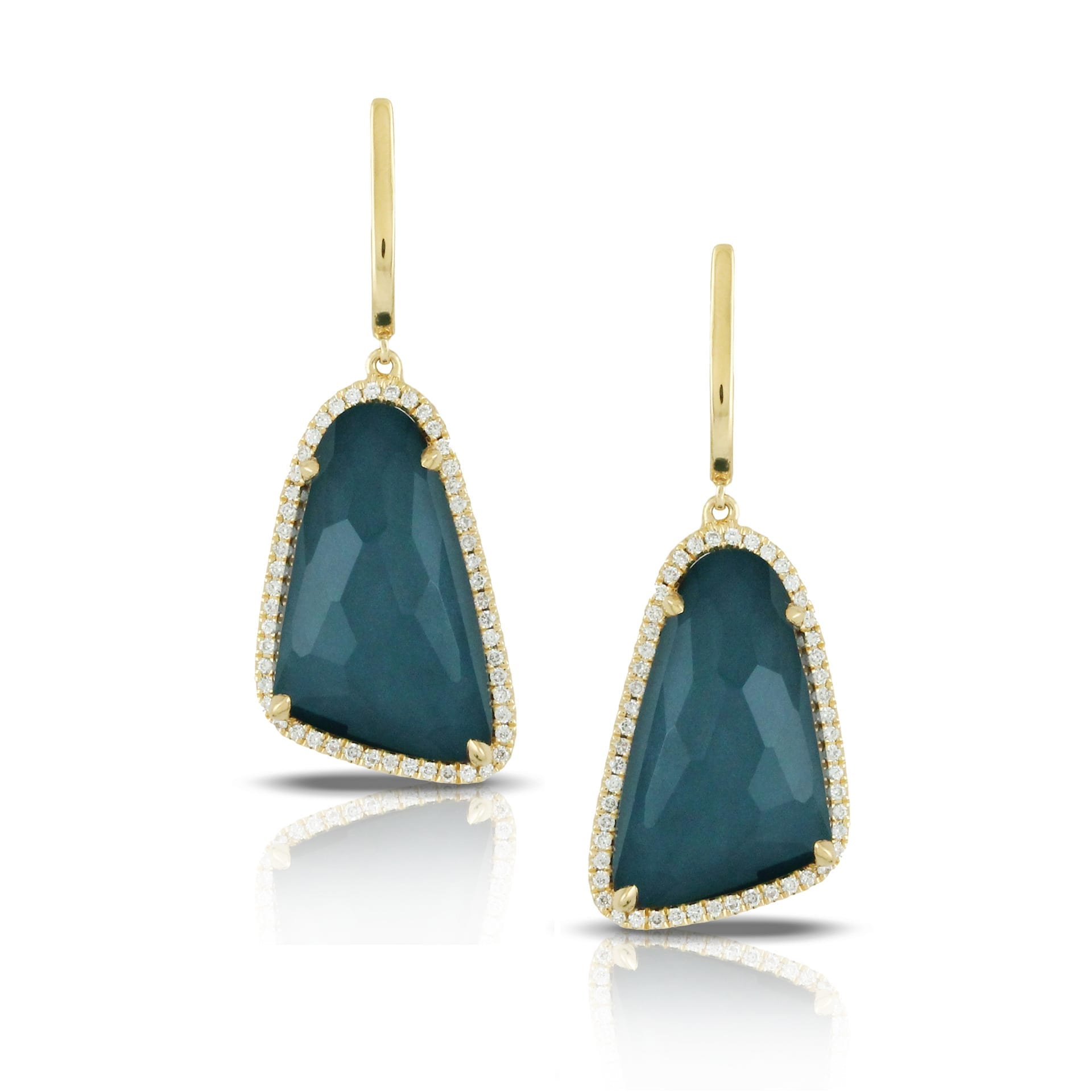 18k Yellow Gold Diamond Earring With Light Blue Topaz Over Hematite