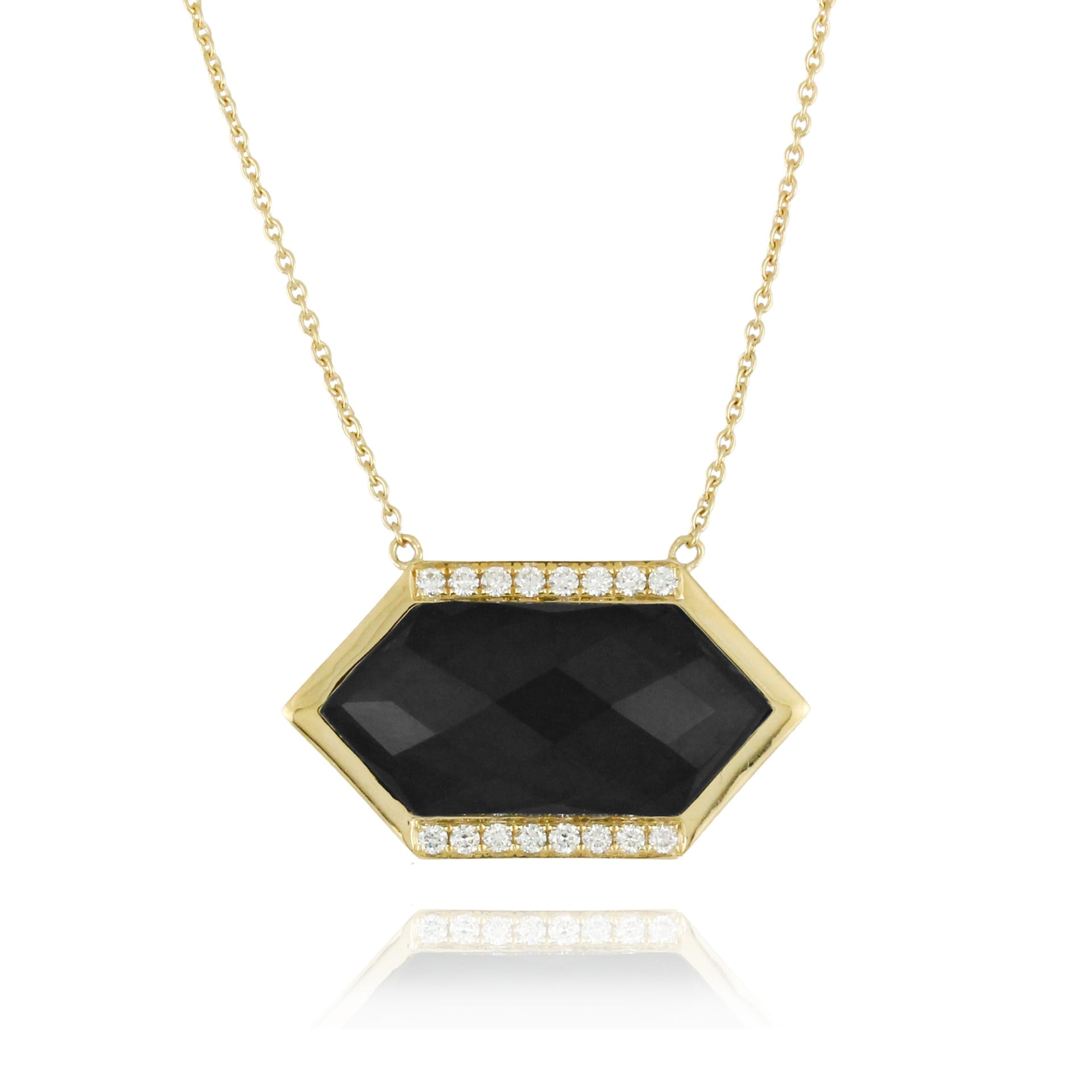 18k Yellow Gold Diamond Necklace With Black Onyx