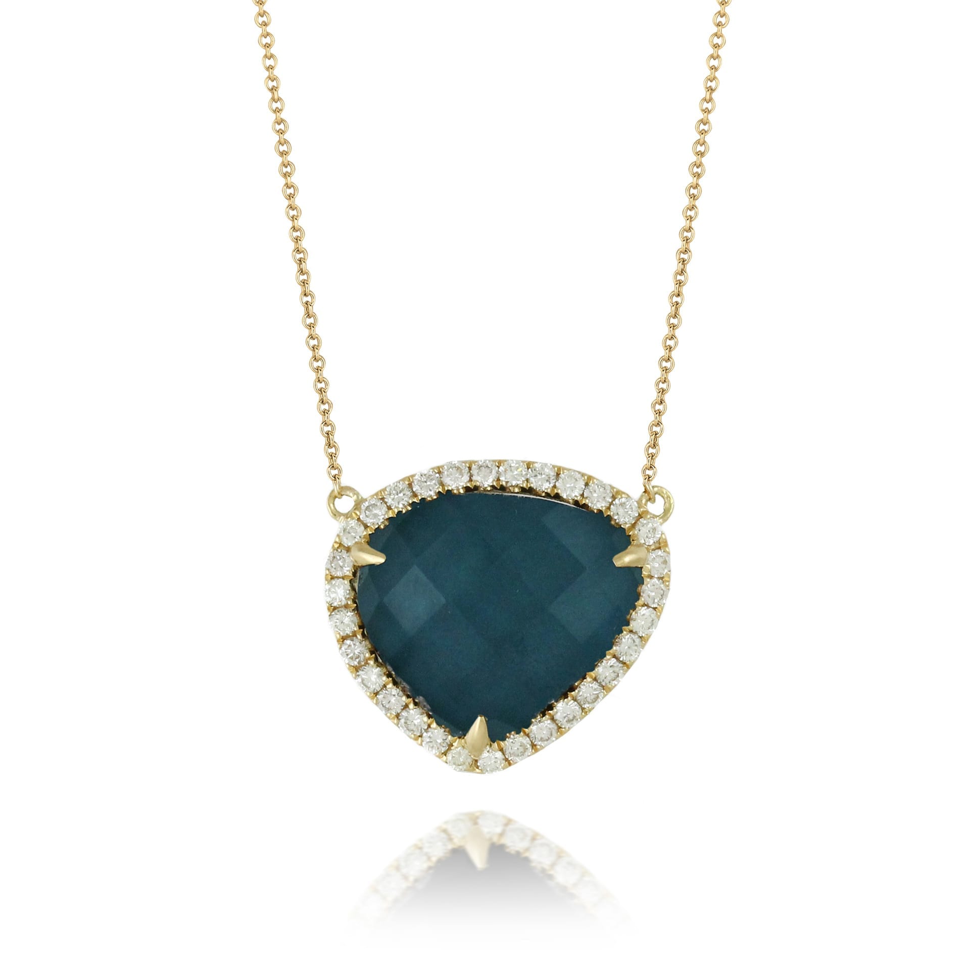 18k Yellow Gold Diamond Nekclace With Sky Blue Topaz Over Hematite