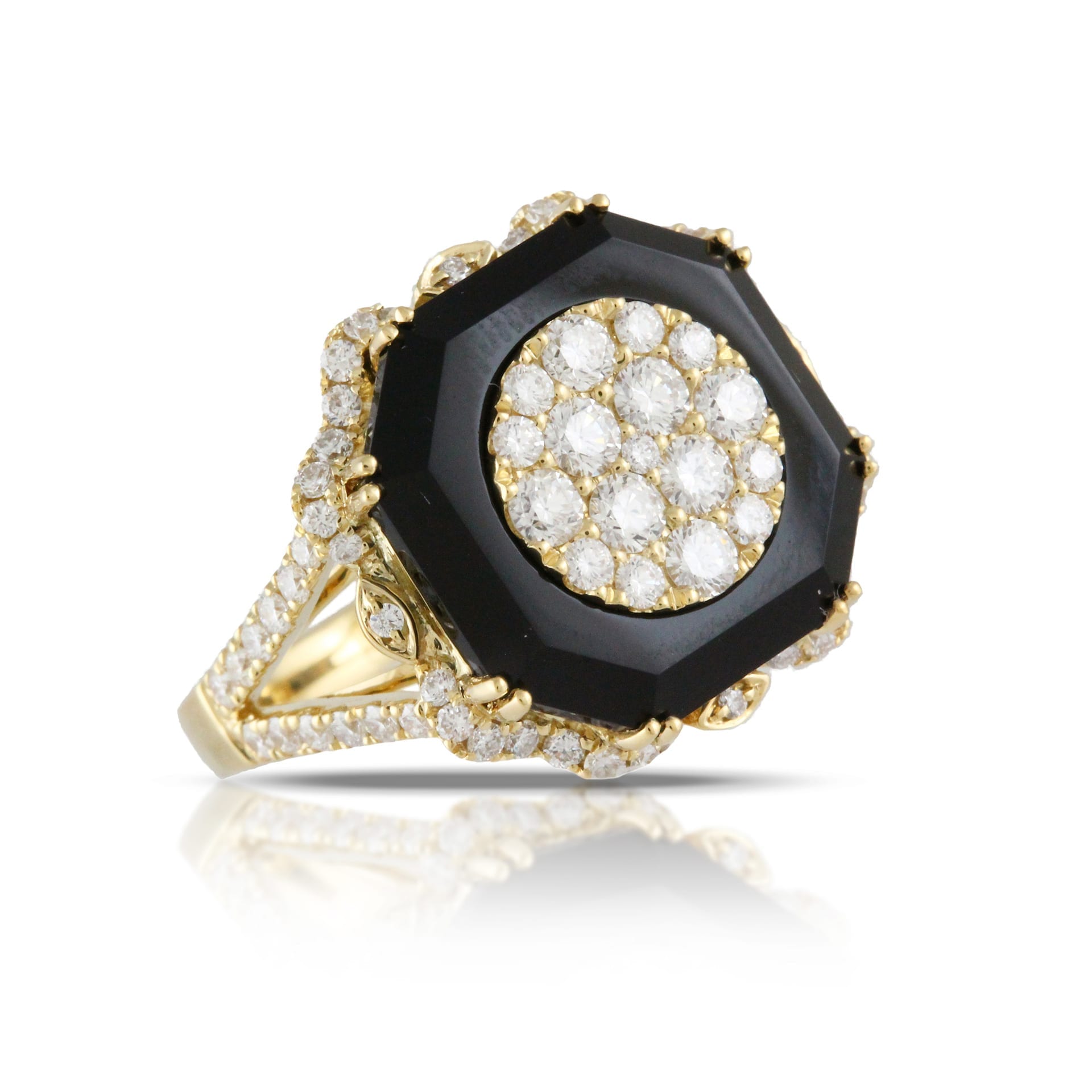 18k Yellow Gold Diamond Ring With Black Onyx