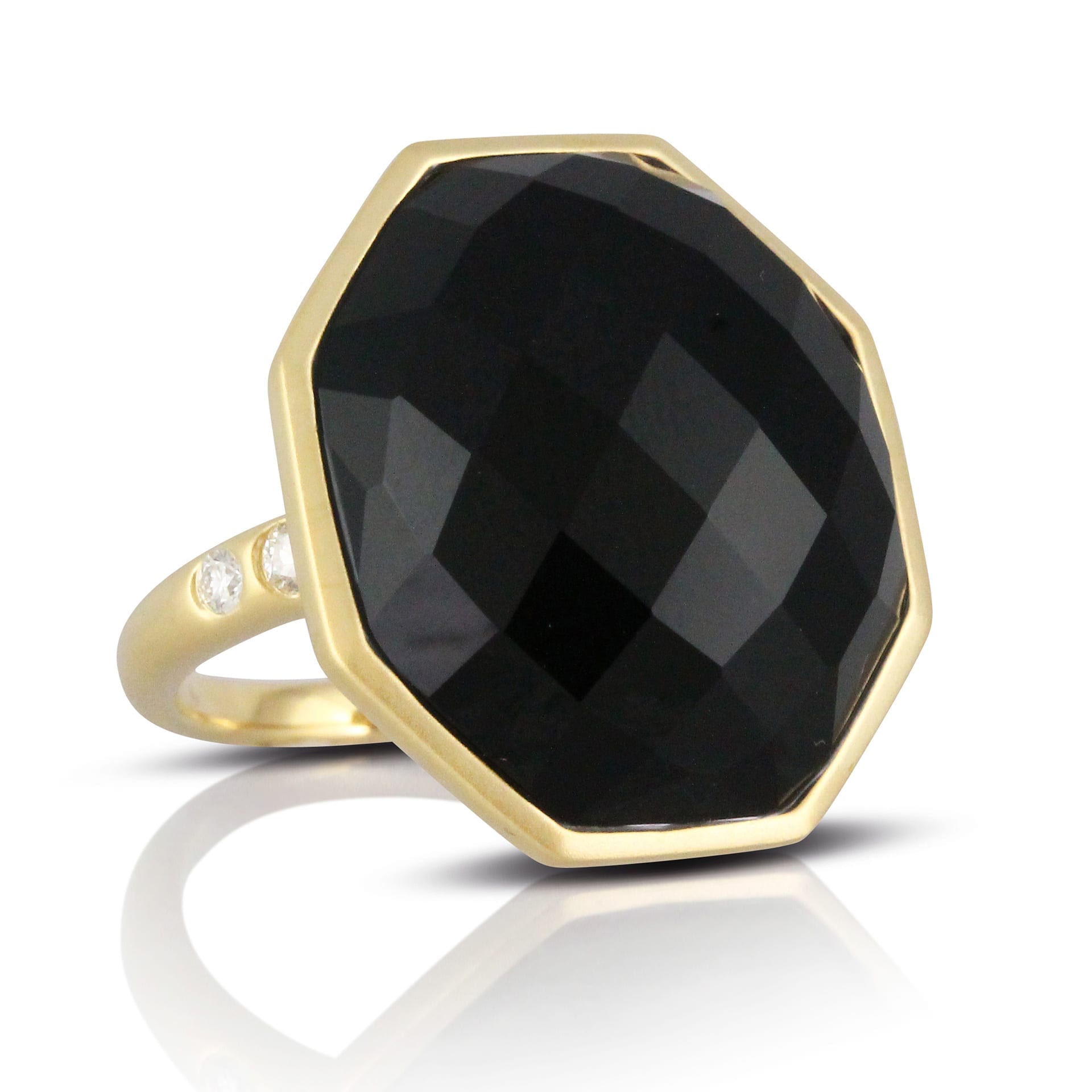 18k Yellow Gold Diamond Ring With Black Onyx In Satin Finish