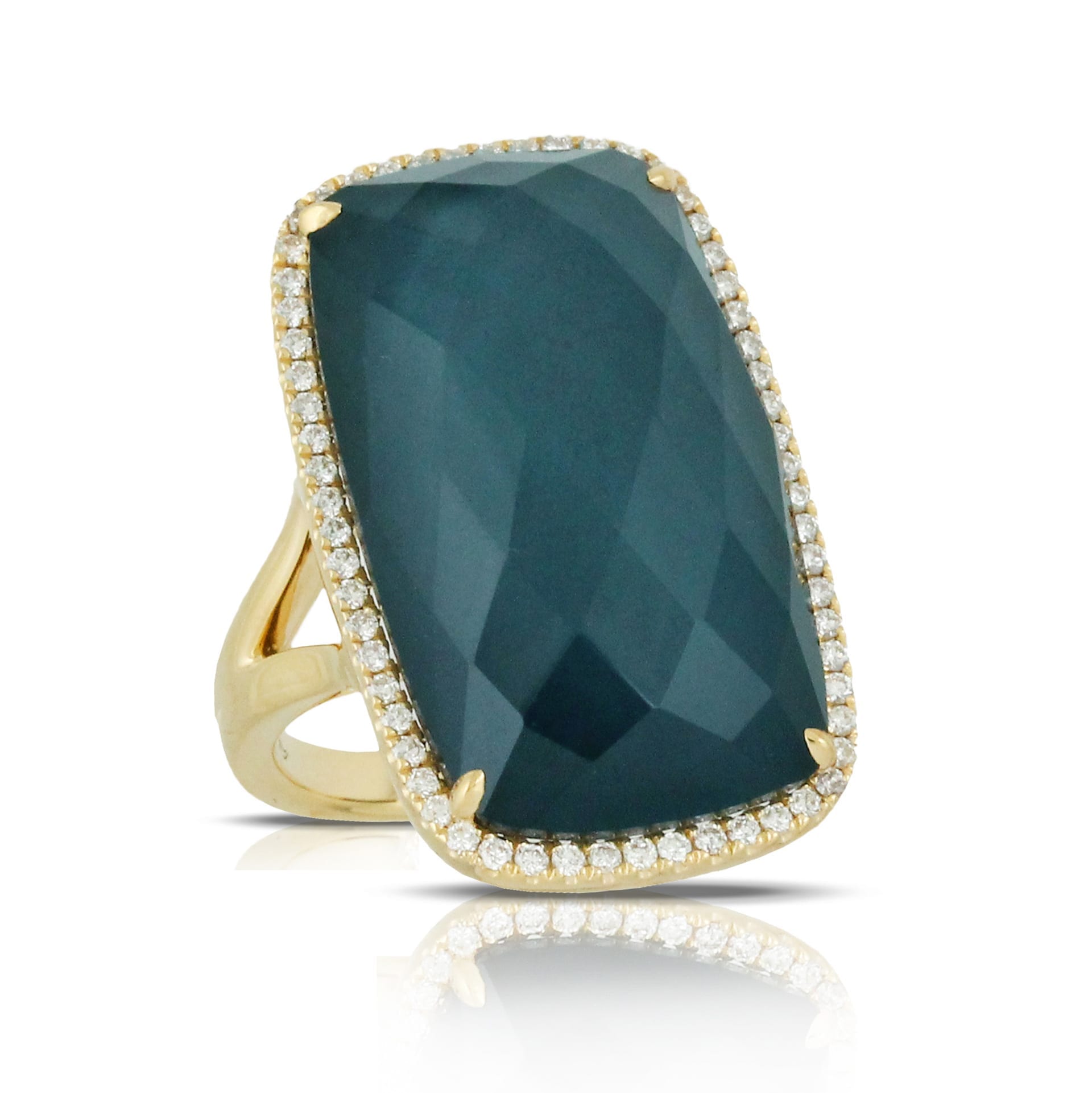 18k Yellow Gold Diamond Ring With Light Blue Topaz Over Hematite