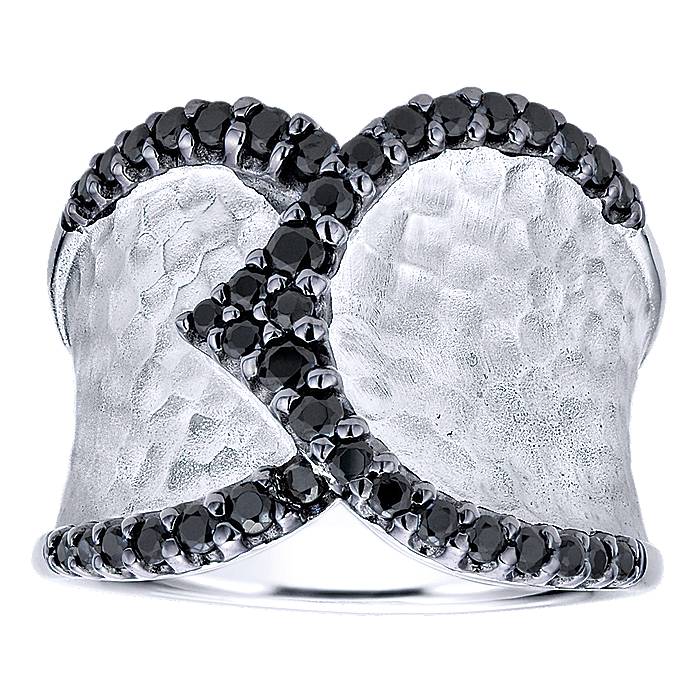 925 Silver Wide Band Black Spinel Ladies Ring