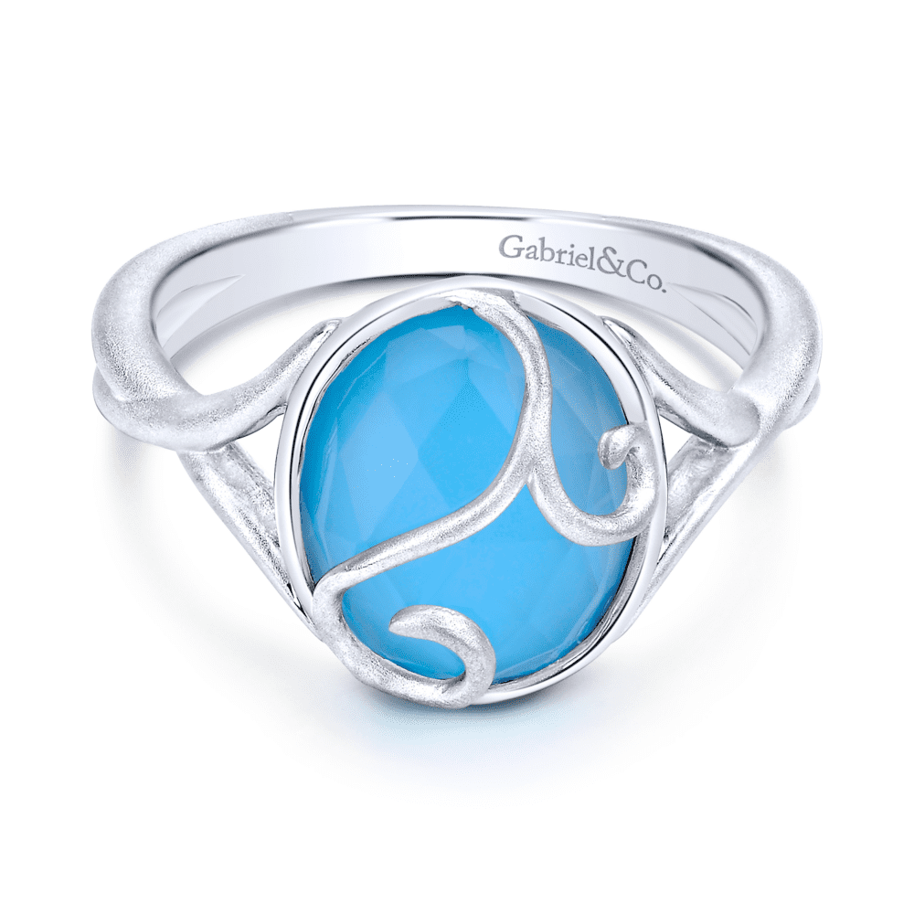925 Sterling Silver Oval Rock Crystal/Turquoise Swirl Ring