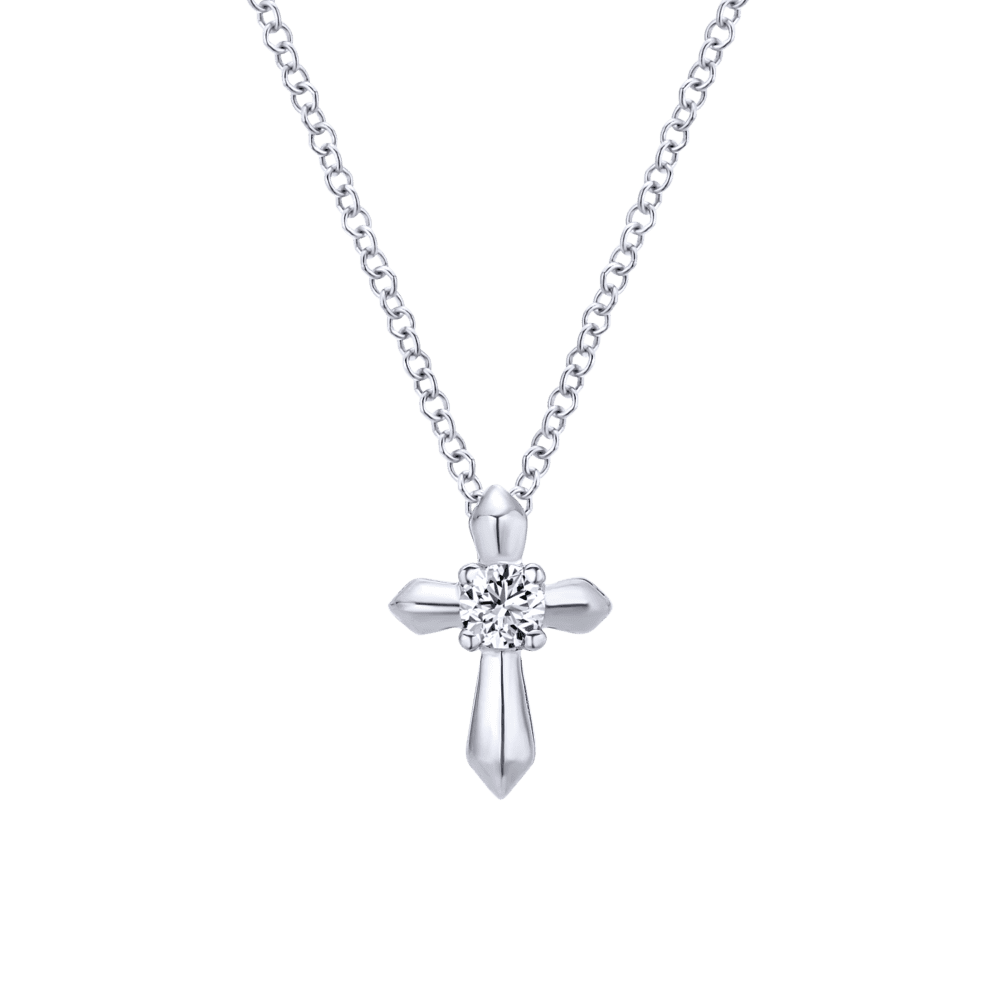 925 Sterling Silver Round Cubic Zirconia Cross Necklace
