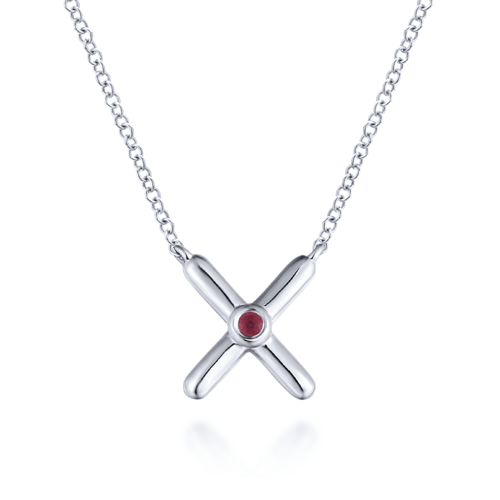 925 Sterling Silver X Necklace with Ruby Stone Center
