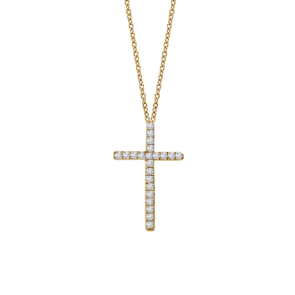 A timeless classics pendant is set with simulated diamonds in gold plated sterling silver The pendant comes on an adjustable 18 inch chain