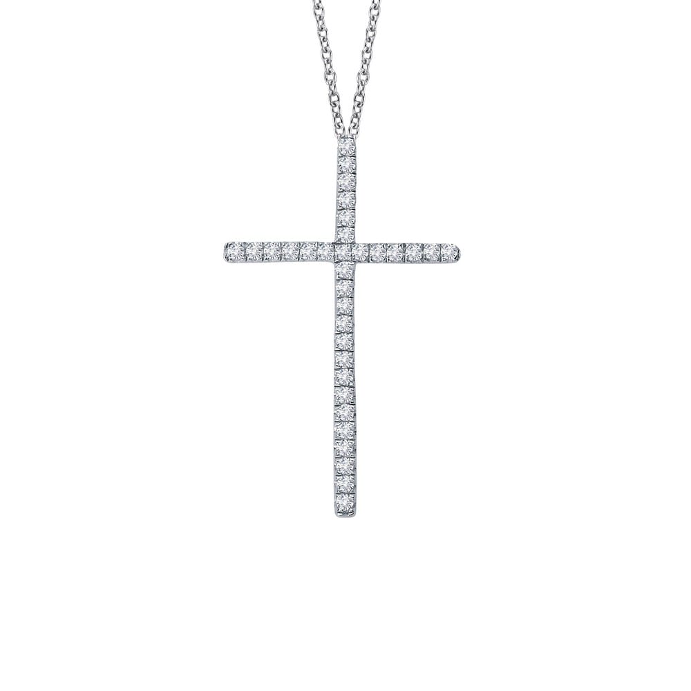 A timeless classics pendant is set with simulated diamonds in sterling silver bonded with platinum The pendant comes on an adjustable 18 inch chain