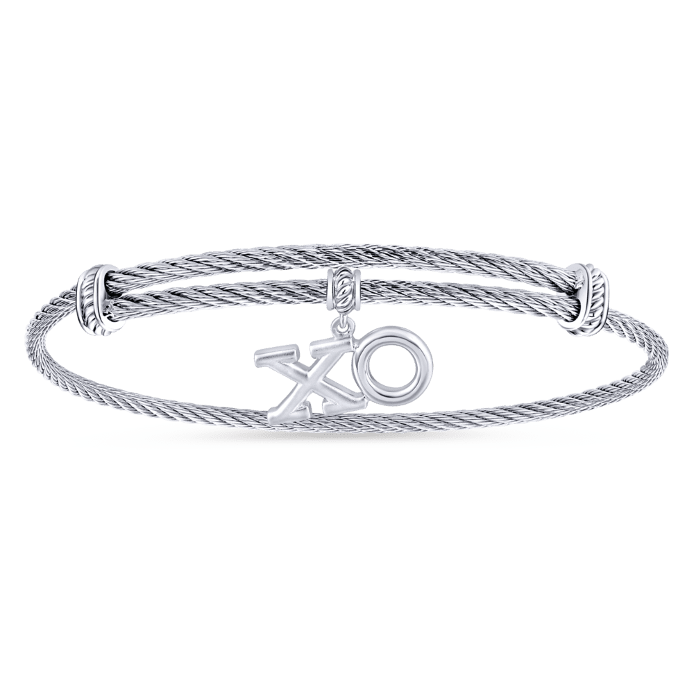 Adjustable Twisted Cable Stainless Steel Bangle with Sterling Silver XO Charm