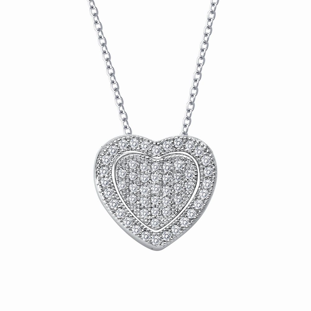 An elegant classics for everyday wear pendant is set with simulated diamonds in sterling silver bonded with platinum The pendant comes on an adjustable 18 inch chain