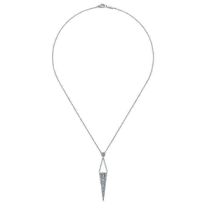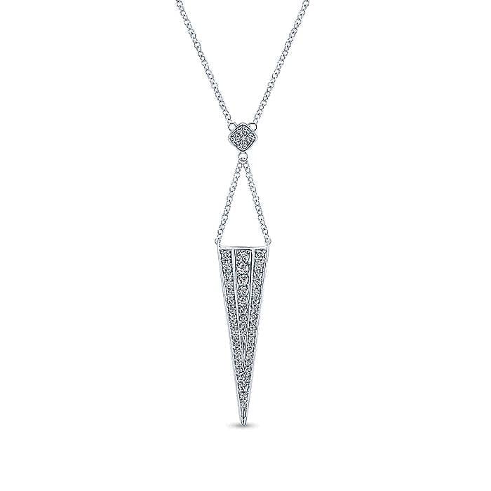 Balancing Geometric Shapes Covered in Diamonds Suspended on 14k White Gold Necklace