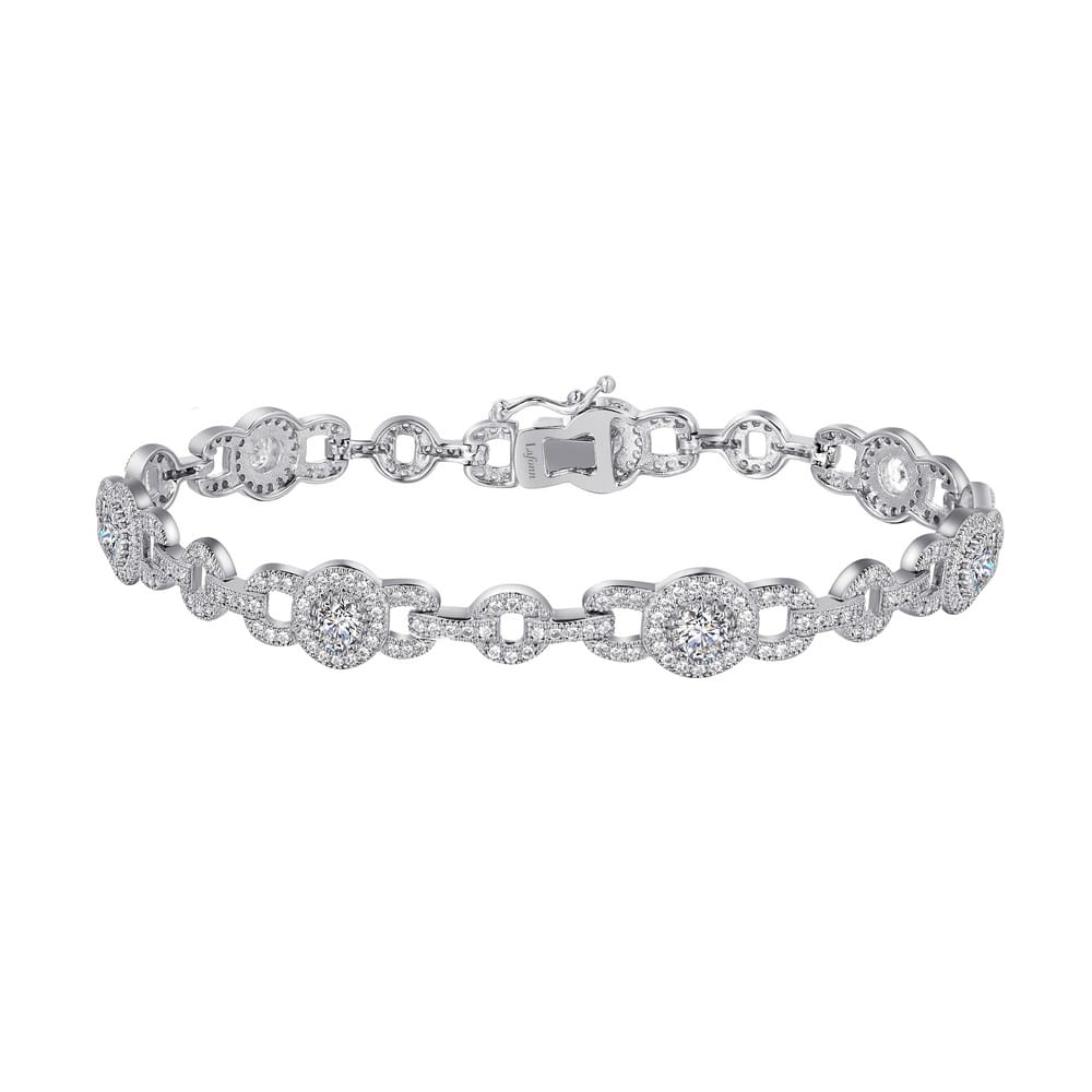 bracelet is set with simulated diamonds in sterling silver bonded with platinum