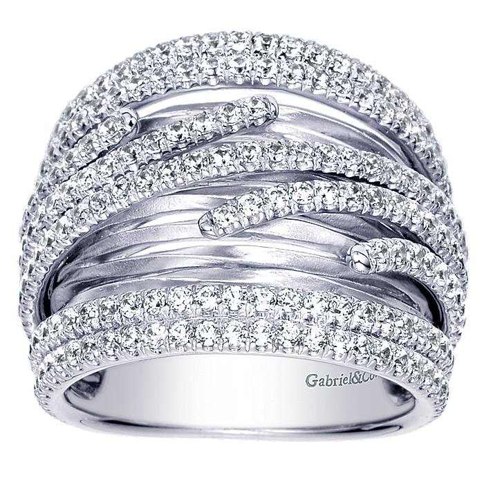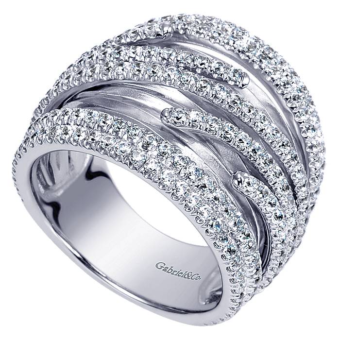 Branching Twisting Design With Strands of Diamonds on Wide Band Women Ring in 14k White Gold