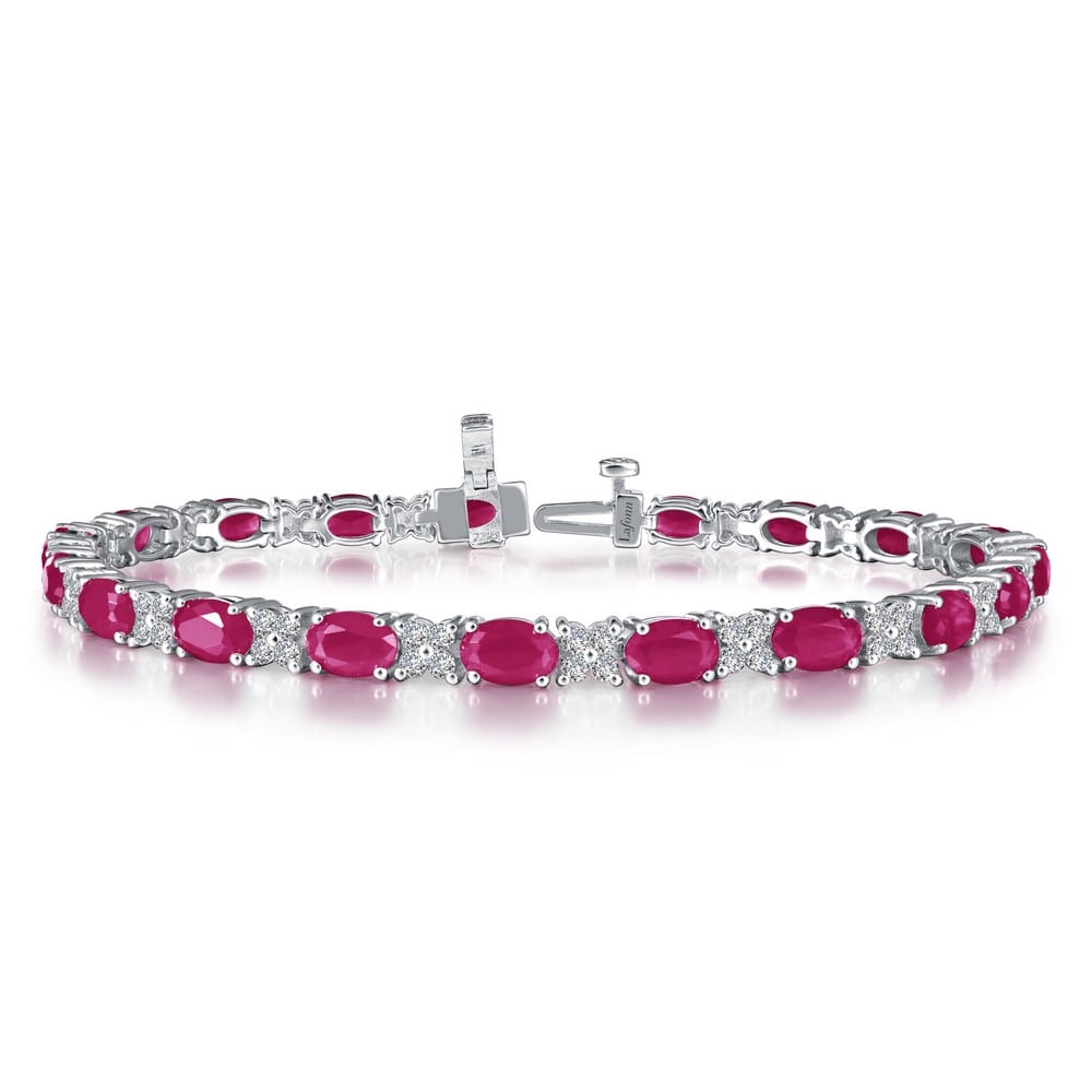 brilliant bracelet is set with simulated diamonds and lab-grown rubies in sterling silver bonded with platinum