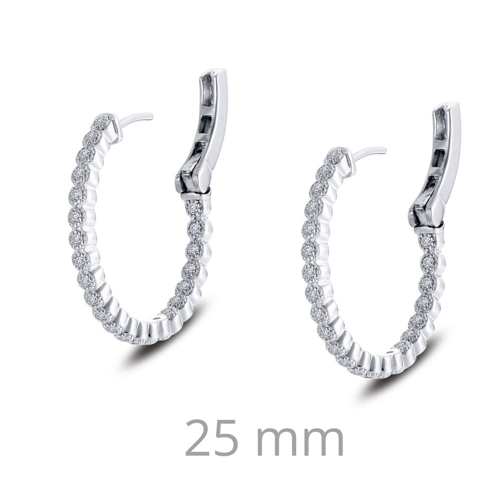 Classic hoops for every occasion hoop earrings are set with simulated diamonds in sterling silver bonded with platinum with exquisite milgrain detail makes these earrings a breathtaking piece 25mm diameter