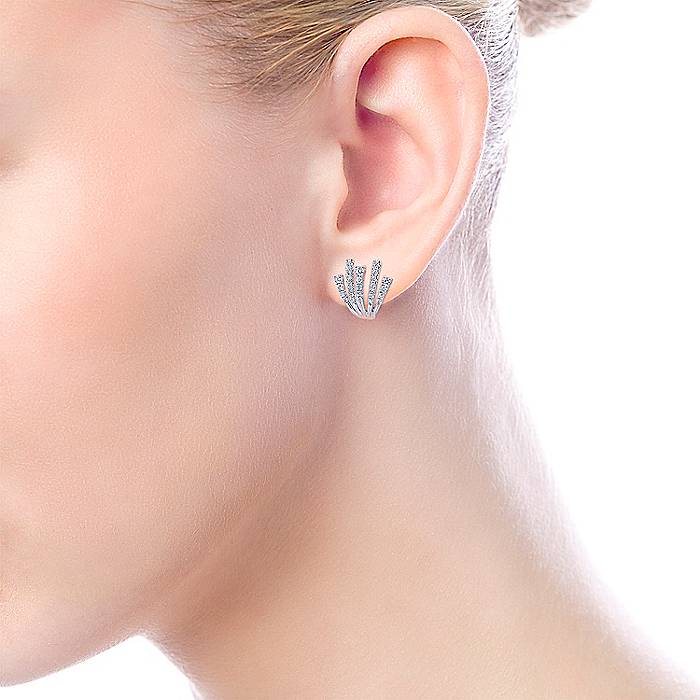 Contemporary Lusso Diamond J Curve Earrings Set in 14k White Gold