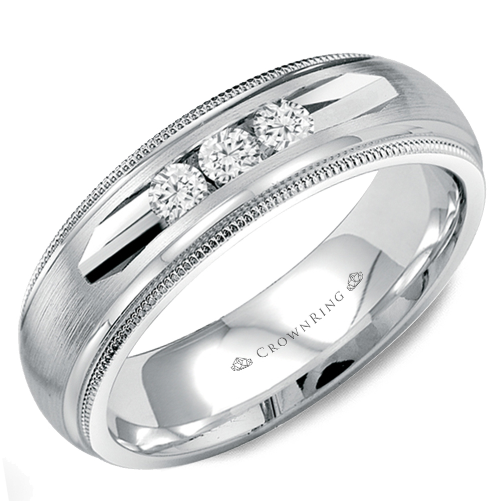 CrownRing Wedding Band in White Gold with 3 Round Diamonds, TCW 0.21 ct
