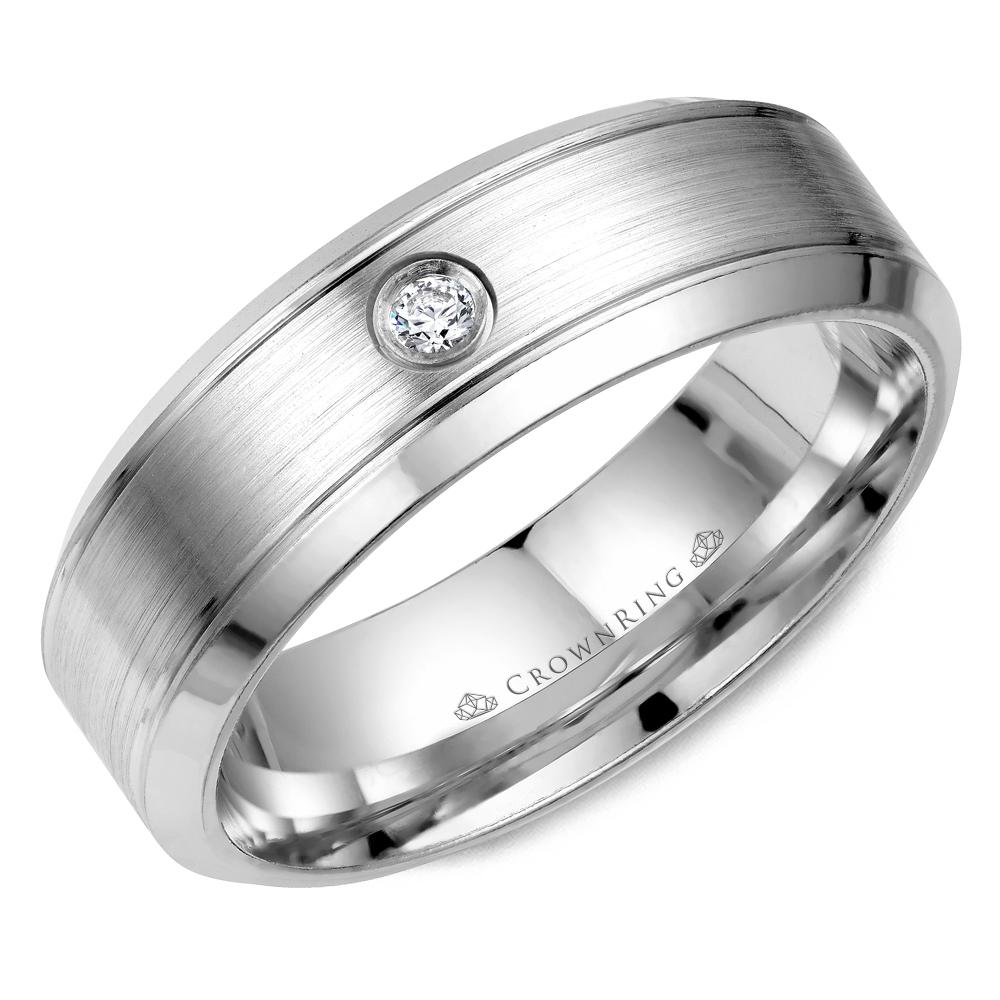 CrownRing Wedding Band in White Gold with Round Diamond, TCW 0.04 ct
