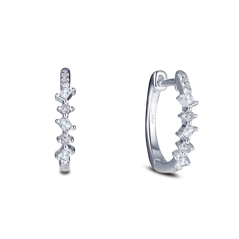 Cute and dainty These baguette and round alternating huggie hoop earrings are set with clear simulated diamonds in sterling silver bonded with platinum