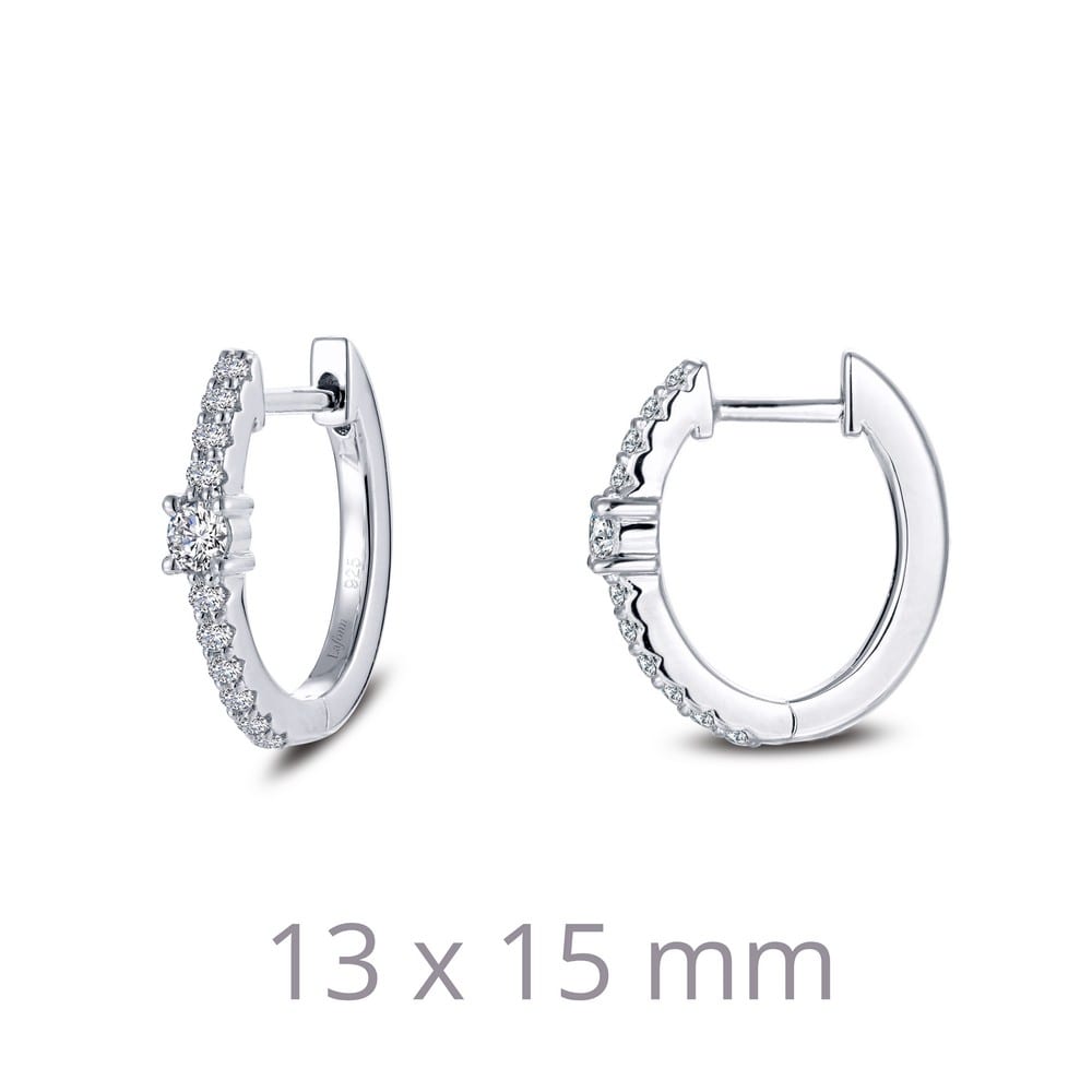 Cute and dainty These oval huggie station hoop earrings are set with simulated diamonds in sterling silver bonded with platinum