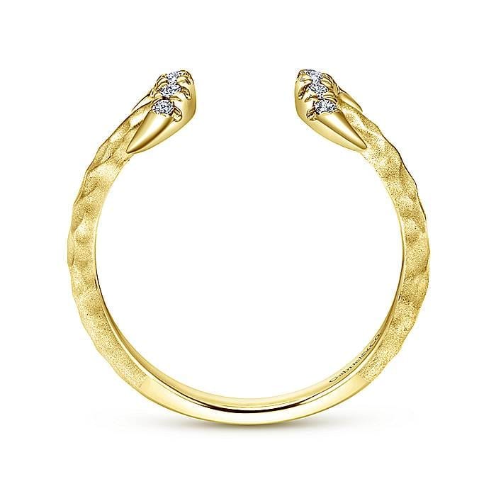 Diamond Crescent Moons Grace Open Midi Knuckle Ring Crafted in Hammered Textured 14k Yellow Gold